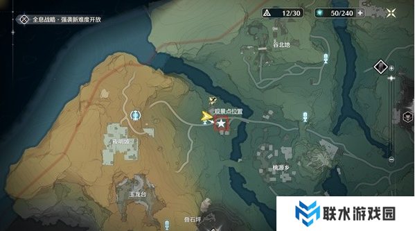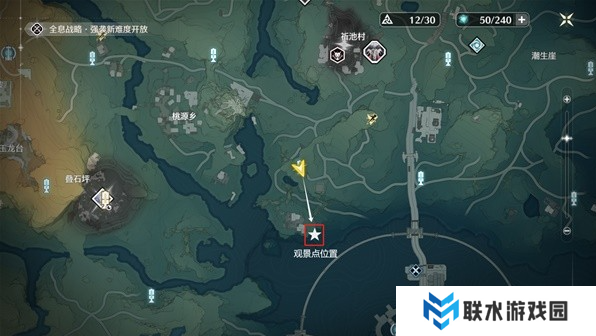 观景点位于桃源乡左上方,我们从如图角色所在位置的传送点过去就好。