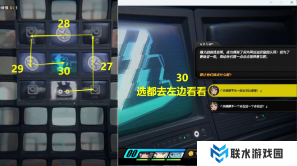 6、接着依次去27-29区域,到30区域选择第1个【你俩要不先一起去左边看看?】;