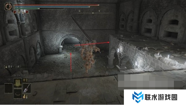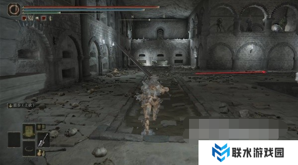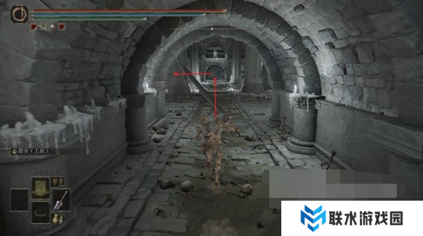 4、从地下墓地开始出门左转,躲避怪物的攻击直走到尽头继续左转。