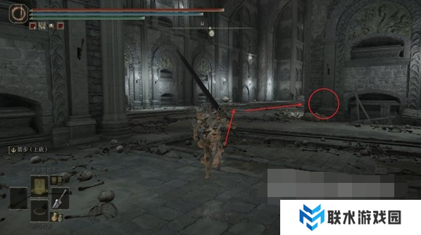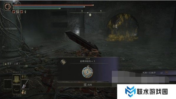 9、击败此处的BOSS死骑士获得护符【蓝琥珀坠链+3】。