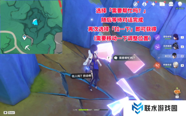 在点位处,发现有人喊救命,选择「需要帮忙吗?」,随后等待对话完成,再次选择「拉一下」即可获得(需要移动一下调整位置)。