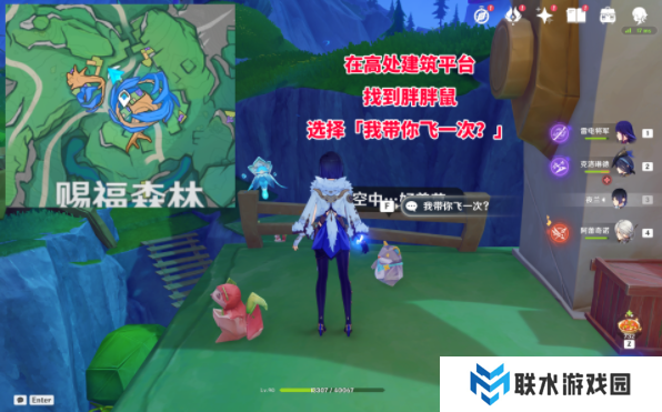 在点位处(高处建筑平台)找到胖胖鼠选择「我带你飞一次?」即可获得。