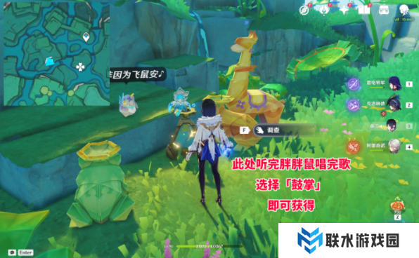 在点位处找到一只胖胖鼠和两只羊驼,等待它们对完话即可获得(可以先去完成后面的限时机关)。