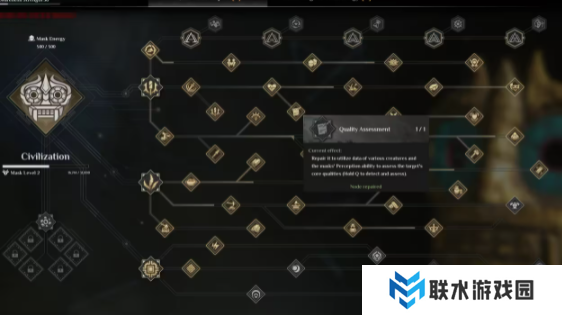 1、首先,在【面甲节点修复】界面,使用【绿晶石】修复【素质评估】这个节点。