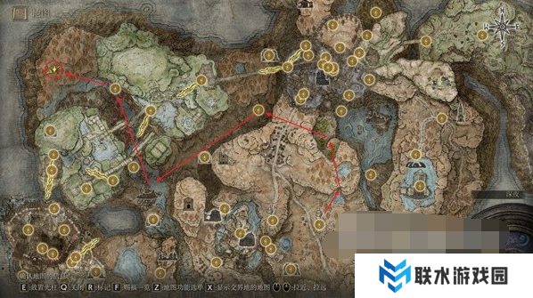 击败地图左上角的大红熊鲁格利亚即可获得这个祷告,从穆斯废墟出发穿过右上洞穴按照下图路线即可到达红熊的位置。