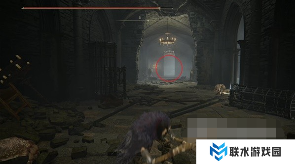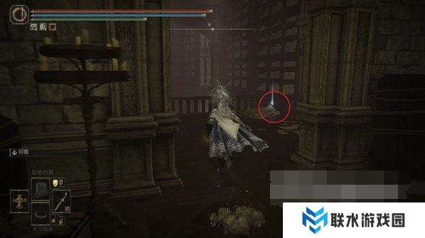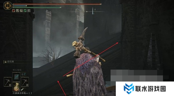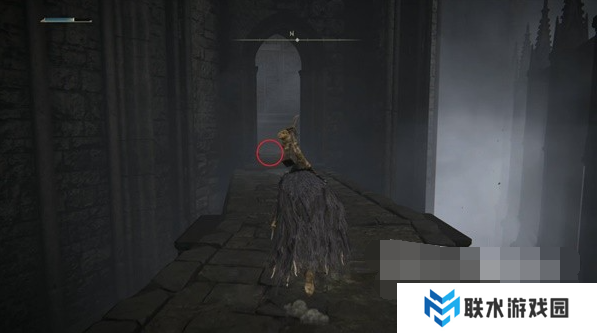 11、在上层偷袭前方的火焰骑士往右走,先爬上一段楼梯然后走到右侧尽头的阳台。