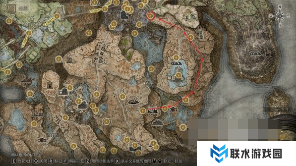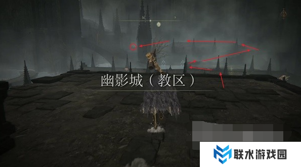 4、然后跟随下图路线一直往上走到幽影城教区的位置。