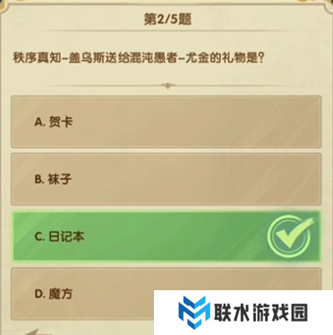 1、秩序真知-盖乌斯送给混沌愚者-尤金的礼物是?