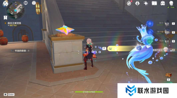 7、往前走,在下图位置先攻击发条3次回溯到最前面,点按"T"连接神谕柱,等待对话结束即可,获得精致的宝箱①;