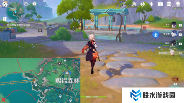 2、然后传送赐福森林西方向锚点,往地图的西北方向走,之后跟着指引前往车站站台,与妮露/绮良良对话6分钟;