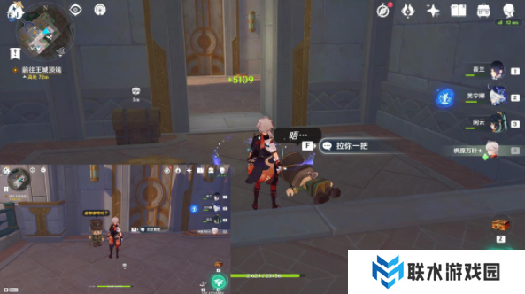 11、先交互倒地的积木小人“拉你一把”,再交互门口的积木小人“交给我吧”,即可开启通道;