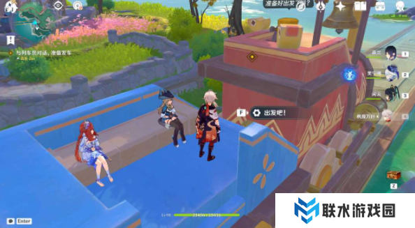 4、跟着指引前往地图的西方向车厢,与列车对话,交互“出发吧!”;