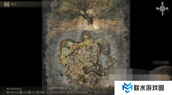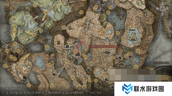 2、从赐福【大道旁的十字记号】出发,往地图左侧走水路就能到传送石的位置,两者距离很近。