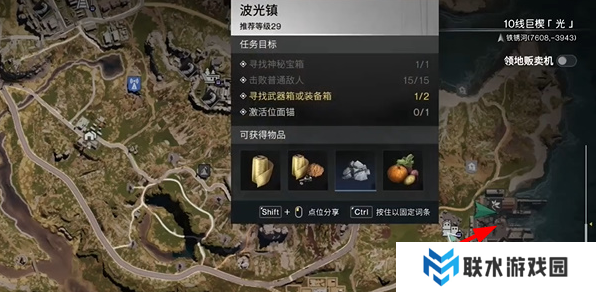 3、玩家可以来到【铁锈河的波光镇】位置,如下图: