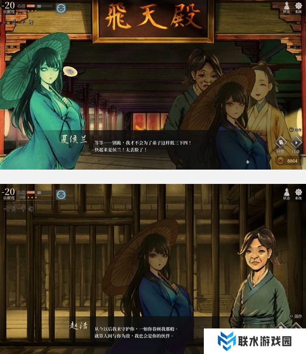 5、夏侯兰的关键节点剧情就到这里,夏侯兰刷好感的地方蛮好刷的,反正就是去她那里修炼,好感度嘎嘎上,还加一系列武学能力。