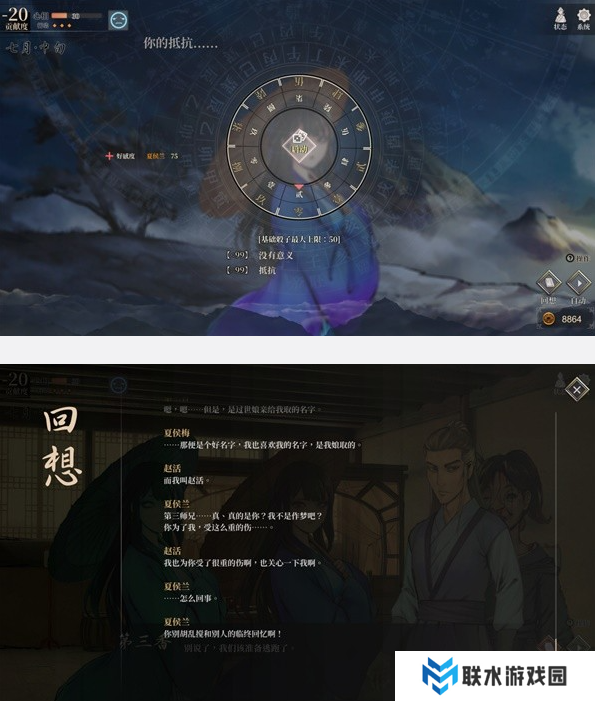 1、夏侯兰关键剧情,特别关键,如果没有这两个剧情节点你和夏侯兰直接查无此人!第一个是去留学门派一定是夺魄门!一定得是!然后在四月上旬的时候会触发一个剧情,你必须得防御成功,然后打赢他一次,然后他的师傅会来帮他,这里必须输!输不了就拖时间,打的过也绝对不能打过,一旦打过就会被对面老师点穴,然后就无缘夏侯兰。
