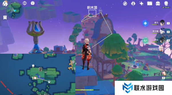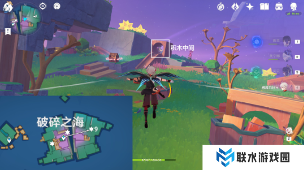 传送破碎之海南方向锚点,按图中指引路线飞,爬至积木顶拾取。