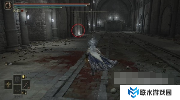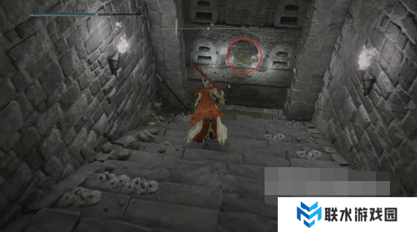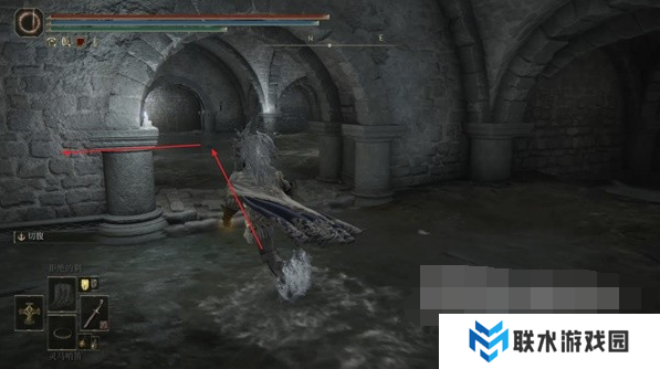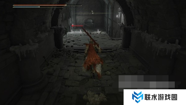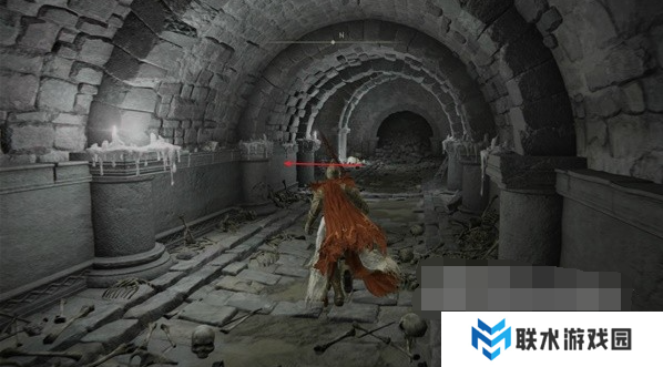 2、进入地下墓地先乘坐第一个升降梯往下走点亮赐福,接着往前走一段距离左转来到一个大厅。