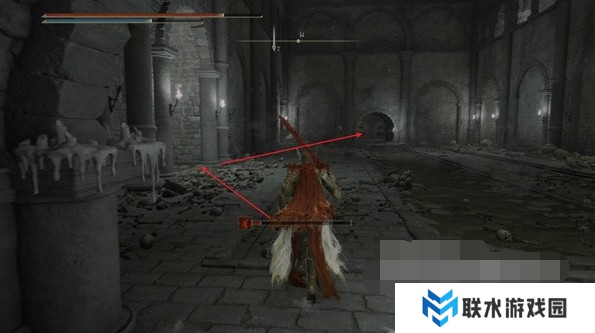 7、躲避上面的尖刺陷阱与前方法师攻击的同时,左侧第二个大门走,从这个大门跳下去。