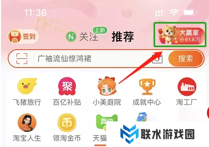 第一步打开淘宝,在淘宝首页可以看到【大赢家】的小图标,点击进入;