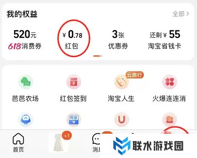 1、进入淘宝,点击右下角的【我的淘宝】,在我的权益这一栏可以看到【红包】;