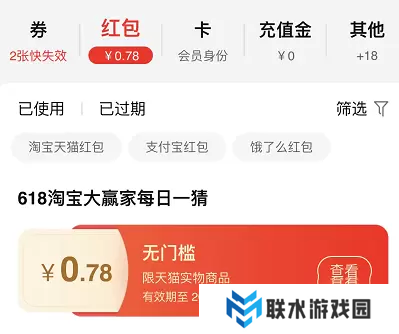 2、点击进入在红包的选项里面可以看到【618淘宝大赢家每日一猜】的无门槛红包,红包是有使用时间限制的大家记得及时使用哦。