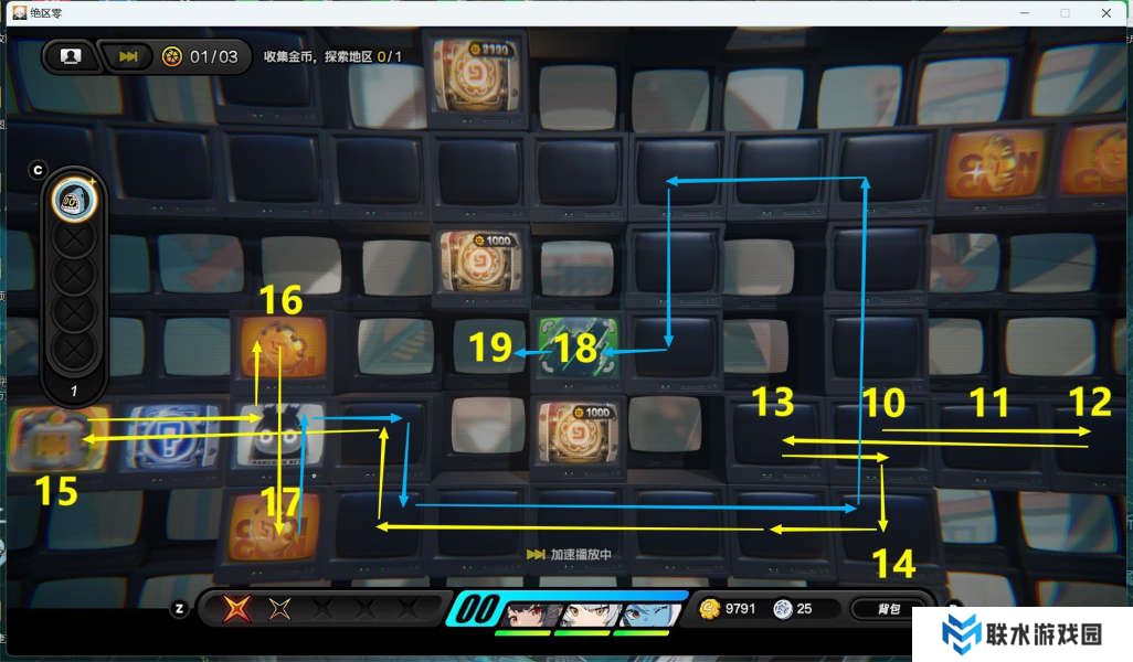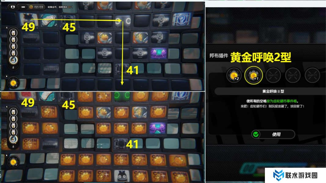 18、接着去41区域的下面区域按R键使用【黄金呼唤2型】,将所有空格变为齿轮硬币,然后将41区域下面的齿轮硬币全部收集即可;