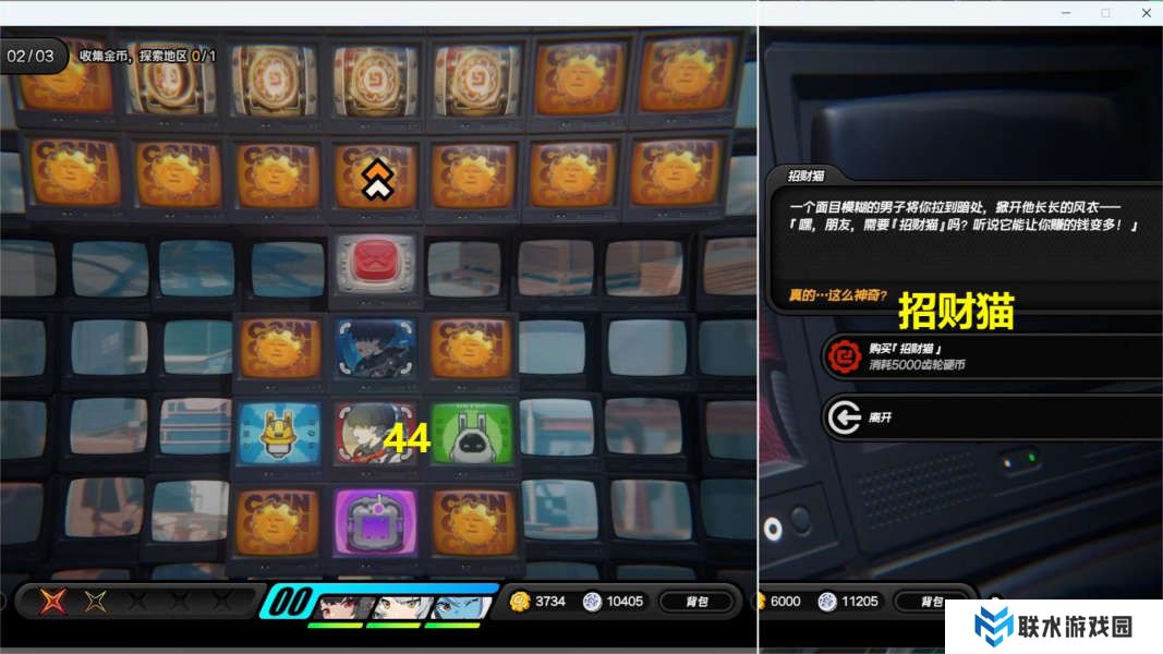 16、在下面44区域转一圈后,在44区域【购买招财猫】,接着往上走;