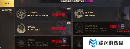 除了不同等级解锁的委托地下城外,还能在【特典地下城】中获取勇气硬币,账号每天最多进入3次,千万别错过。