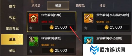 打开商城购买徽章,推荐优先买满四维徽章,这是获取徽章的主要渠道,建议每天都来购买。