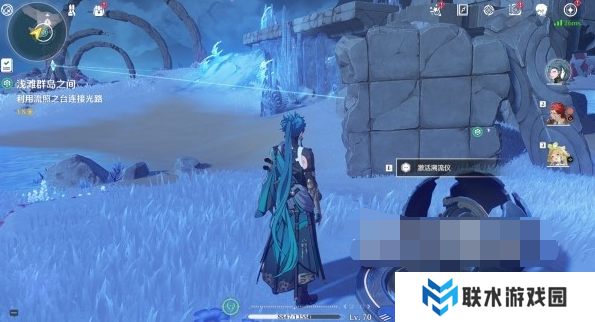 8、然后从最高层跳到下方地面,来到光线照射的墙后,与溯流仪互动。