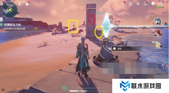 3、跟着光线走到下一个机关柱所在位置,清掉附近的怪。往地图西南边(左下方)看可以看到下一个机关柱,旋转2次点亮。