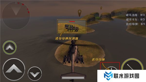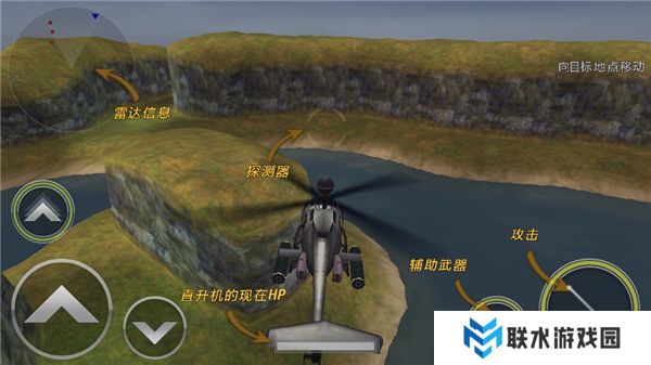 3、点击右下角的按键可以控制直升机进行攻击,在屏幕的左上角可以通过雷达查看敌人的位置。