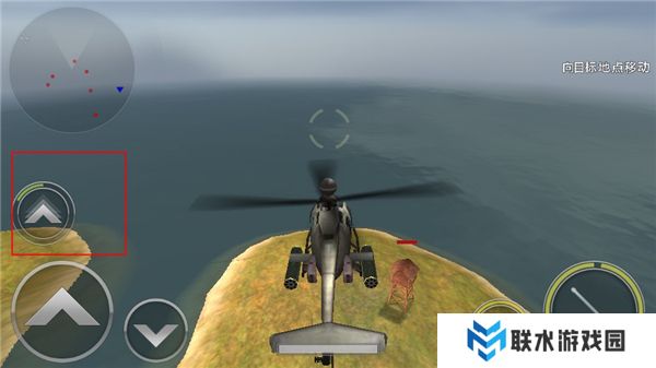 4、飞行的工程中,玩家们点击前进键上方的按键可以对直升机进行推进提高飞行速度。