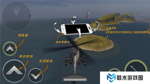 2、进入到场景内后,玩家们使用左下角的按键控制直升机前进和后退。