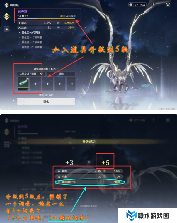 紫色可调谐4次,获得4个新词条;→声骸升级为20级
