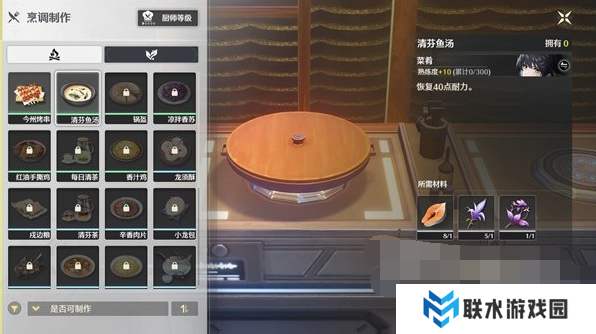 4、清芬鱼汤所需要的材料大多都可以从旁边的药房买到,缺材料的可以直接点击材料并查看获取途径,材料齐全后制作一个清芬鱼汤回到研究院的位置将鱼汤交给猫咪即可完成此次任务。