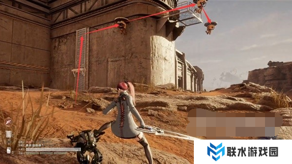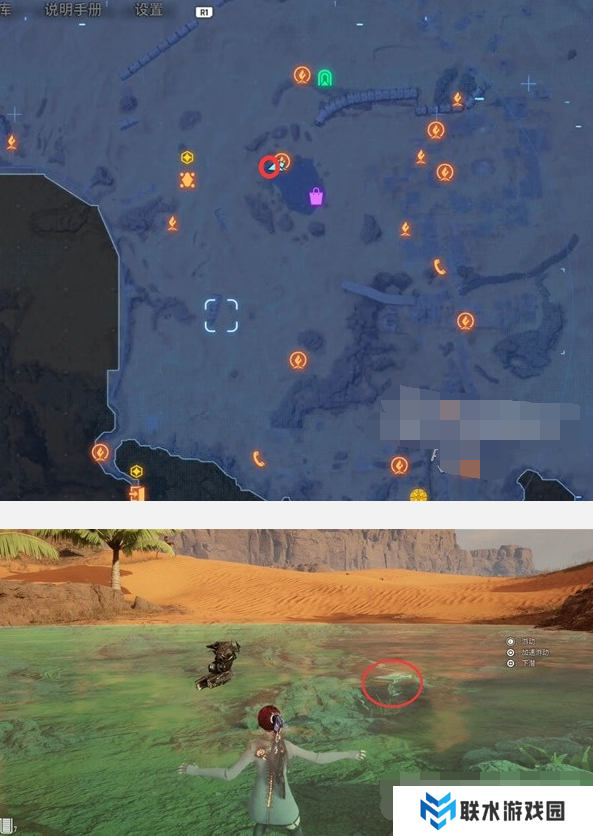 1、从沙漠的下图位置跳到上面去。开箱子拿到饮料罐后,抓绳子继续跳,开门爬下梯子,捡到绿洲的【密码】。