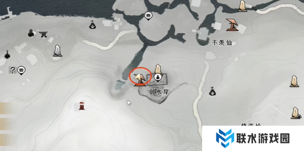 1、玩家要来到【弱水岸】标记好的位置,之后进入到房间中,和婆婆对话就触发奇遇任务;