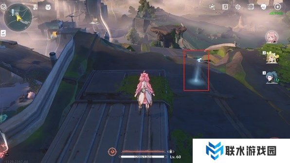 第七个观景点位于焚焰海的高楼上,我们从如图角色所在位置的传送点过去即可。