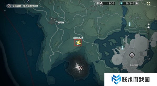 观景点位于猢思崖地图右下方传送点,传送到这里立刻就可以看到。