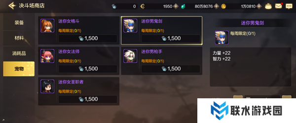通过“对战-排位赛-决斗商店-宠物栏”,可购买免费的迷你系列宠物,大家可以根据需求购买。