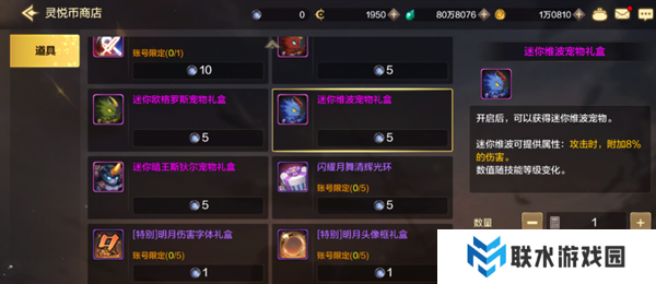 在游戏中的“福利-灵悦币商店”内也有几款宠物可以选购兑换,是当前版本最强宠物。