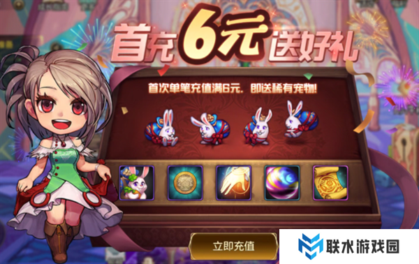 游戏中的首充奖励可以获得稀有宠物,目前赠送的宠物是【金钱兔】,其属性较为不错,只需要首充6元即可获得,同时还有其他奖励可领取