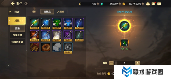 中级、上级药剂需要我们在制作功能中获得,5个下级药剂可以制作1个中级药剂,5个中级药剂可以制作1个上级药剂。