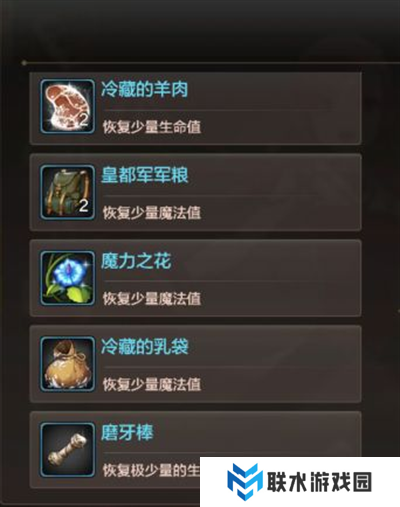 2、卡妮娜的手工面包(恢复总生命值的20%)和卡妮娜的赫顿玛尔牛奶(恢复总魔法值的20%)