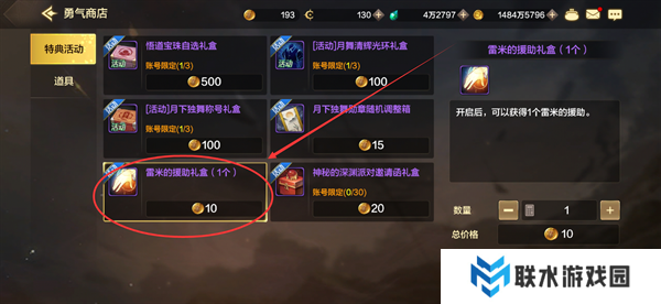 在勇气商店里,我们也可以获得雷米的援助,10个勇气币可兑换1个雷米的援助礼盒,打开可以获取1个雷米的援助;