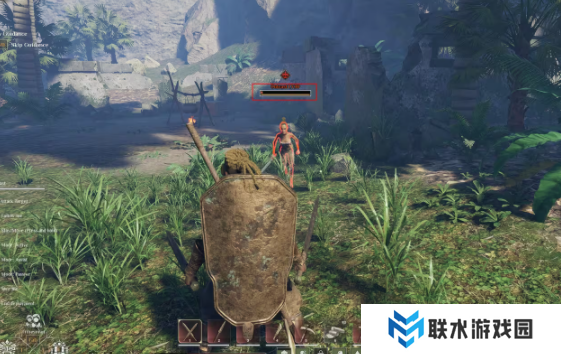 1、在战斗前,先按【Q】键查看敌人的血条长度,随后不断攻击蛮人,将蛮人的生命值打到一个较低的状态,注意此时蛮人的生命值条会闪烁白光。
