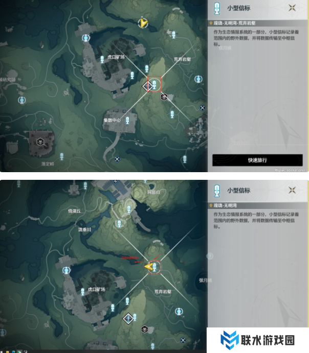 *其他传送点都在大地图能看到,这两个传送点位置比较偏,尤其荒弃岩壑传送点是奏鸣测试都没有的,两个传送点都在洞穴内部,路线有点难找,可以根据下图的路线进行开启: