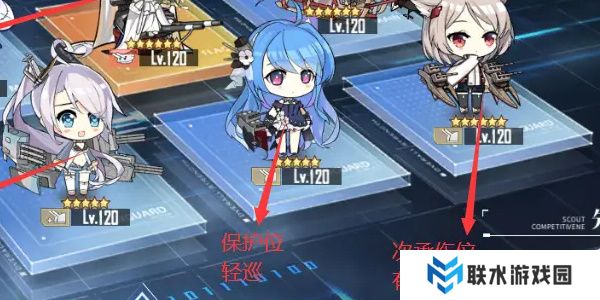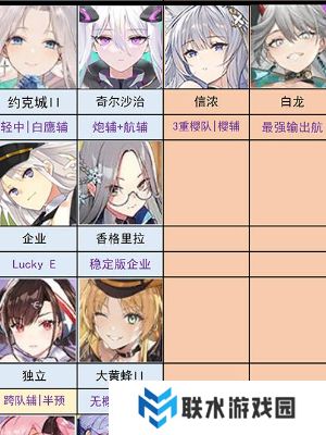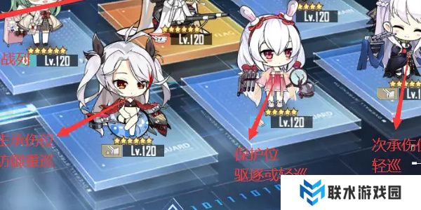 第二行左侧为重巡,也就是承伤位,第二行右侧为次承伤,主要为轻巡,第二行中间为保护位,主要为轻巡或驱逐位。